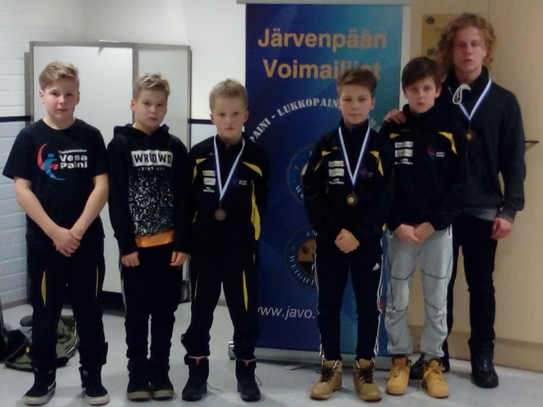 Vuoksenniskan Vesan painijat osallistuivat sunnuntaina Järvenpäässä perinteisiin Loppiaispaineihin, johon osallistui tänä vuonna 121 painijaa 23: sta eri seurasta. Kotiin tuomisina oli tällä kertaa kolme pronssia, yksi kuudes, seitsemäs ja kahdeksas sija. Pronssille painivat Ukko Korhonen sarjassa 32 kg, Otto Huhtanen sarjassa 38 kg ja Valtteri Auvinen sarjassa 71 kg. Thomas Havia sijoittui sarjassa 38 kg kuudenneksi ja seurakaveri Aleksi Salpakari seitsemänneksi. Niklas Salpakari oli 8. sarjassa 42 kiloa. Kaikki pojat painivat kadettien eli 17-vuotisten ikäluokassa. VuVe sijoittui seurapisteissä seitsemänneksi kadettien ikäryhmässä Ylä-Tikkurilan Kipinän ja Järvenpään Voimailijoiden viedessä kärkisijoitukset. |