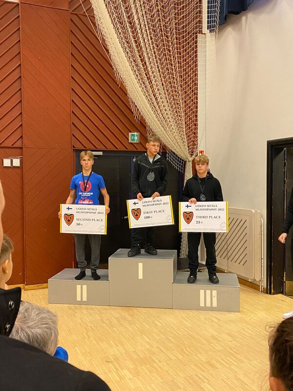 Viimeiset kaksi ottelua sujuivat taas Huuhtasen komennossa sillä Porin Painimiesten Robin Lindeman kaatui ylivoimaisella pistevoitolla 8-0 heti ensimmäisen jakson alussa ja viimeisessä ottelussa tuli selkävoitto Turun Woimamiesten Oskari Luseniuksesta heti ensimmäisellä liikesuorituksella. Sarjassa 55 kiloa kolmanneksi sijoittui Hyvinkään Anton Jyrkkänen. Muistopaineihin otti osaa 146 painijaa 28:sta eri seurasta. |